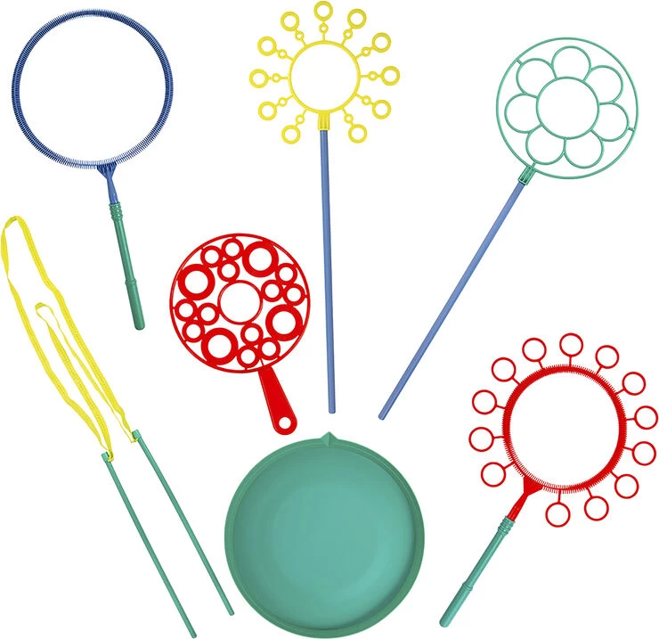 Med dette store sæbeboblesæt er der underholdning til mange timers leg. Sættet indeholder 5 forskellige ringe samt en opskrift, så du kan lave din eget sæbeboblevand. Afvaskes med rent vand. Materiale: PP Emballage: 35 x 33 x 6 cm Alder: 6-10 år