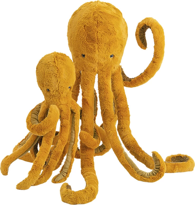 Skøn ottearmet blæksprutte på 45 cm – så skal der krammes! For hvert tøjdyr, der købes fra denne serie, donerer Moulin Roty 1 Euro til organisationen CETASEA, der har til formål at hjælpe havdyr i nød. CETASEA opretter og driver centre for disse havdyr og danner basis for uddannelse og forskning. Vaskeanvisning: Maskinvaskes på 30°C uldprogram. Må ikke tørretumbles. Materiale: Bomuld, polyester Produkt: 45 x 14 x 14 cm Alder: 10 mdr+