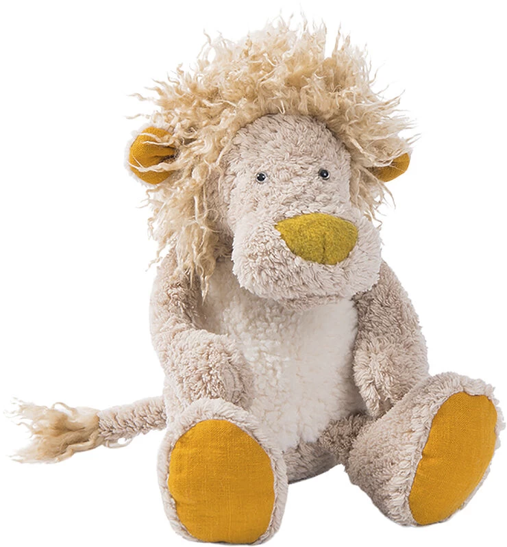 Sød lille løve, lavet af super blødt stof og lige klar til at blive kysset og krammet. Løvens plys hår, arme og ben gør at tøjdyret er ekstra krammevenlig. Løven har gule fodsåler, ører og snude. Materiale:Polyester, linen Produkt: H:30 cm. Alder: 10mdr+