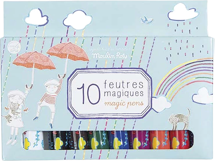 Et sæt med 10 magiske tusser. Tusserne er fremstillet med filt, som gør dem magiske når de bruges. Materiale: PolypropylEne, glycerol, water Produkt: 16 x 9,5 cm Alder: 3+