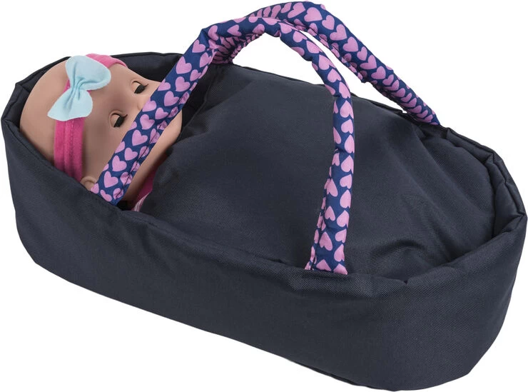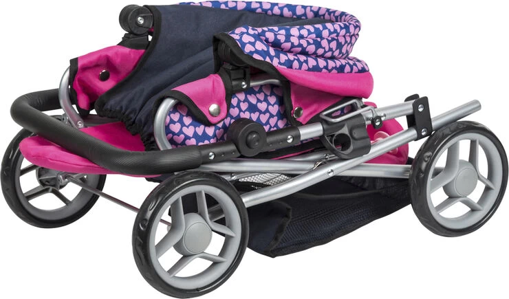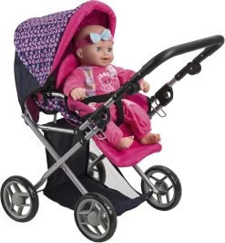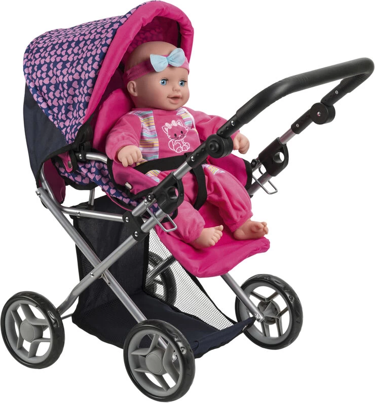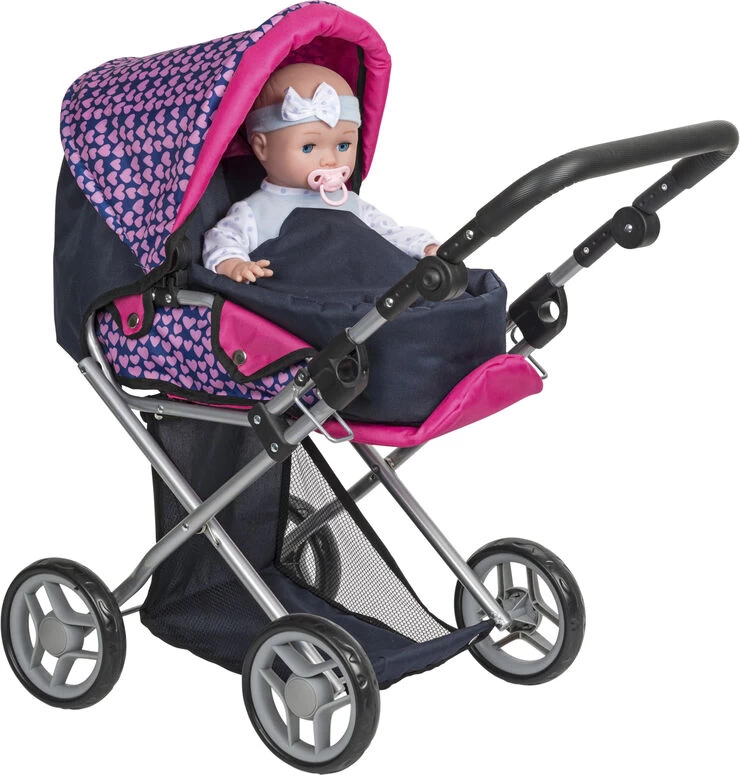 Dukkevogn I metal og stof med stoflift, dyne, pude, opbevaringskurv, højdejusterbart håndtag. indstillelig ryg- og fodstøtte Passer til 30-47 cm dukker Uden dukke