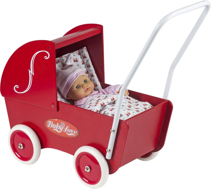 Trædukkevogn Klassisk trædukkevogn der passer til 20-33 cm dukker 47x52x24 cm Uden tilbehør