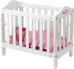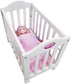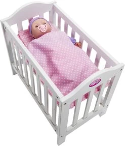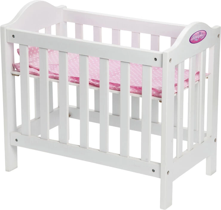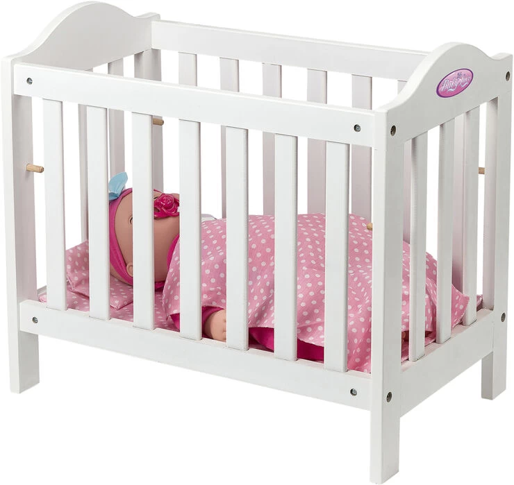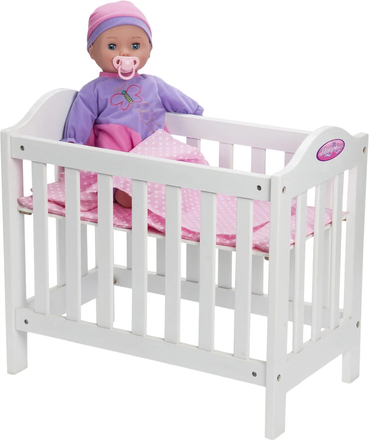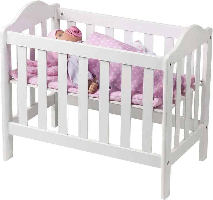 Tremmeseng i træ Med madras. dyne og pude 49x44x30 cm Passer til 30-46 cm dukker Med højdejusterbar bund Uden dukke