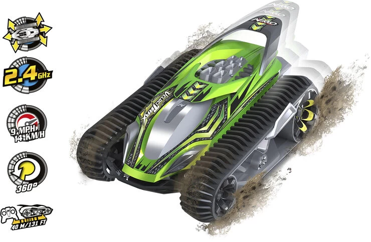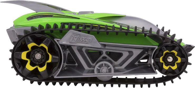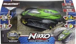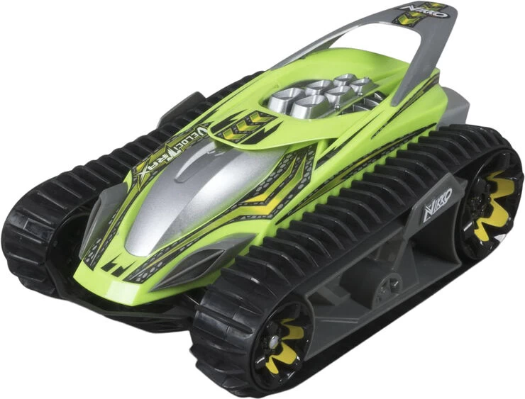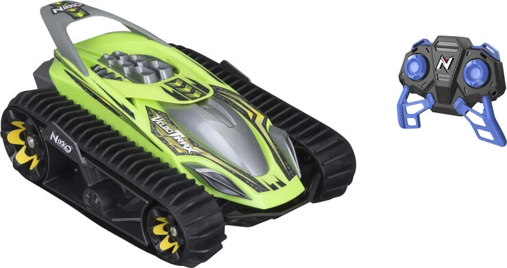 Terræn og forhindringer er ikke noget problem for Velocitrax. Dette køretøj på lavafødder kan spinne 360 grader, klatre på 45% hældninger og er ekstremt manøvredygtigt. Uanset forholdene, så er Velocitrax klar! Med kvalitet og innovation gennem 60 år, er Nikko navnet, du kan stole på! Hurtig med en tophastighed på 14 km/t. Fjernbetjening med fuld funktion og mange retninger. 2.4GHz interferensfri sender for op til 10 kørere ad gangen. Batterier, der genoplades via USB, er inkluderet. Fra 6 år.