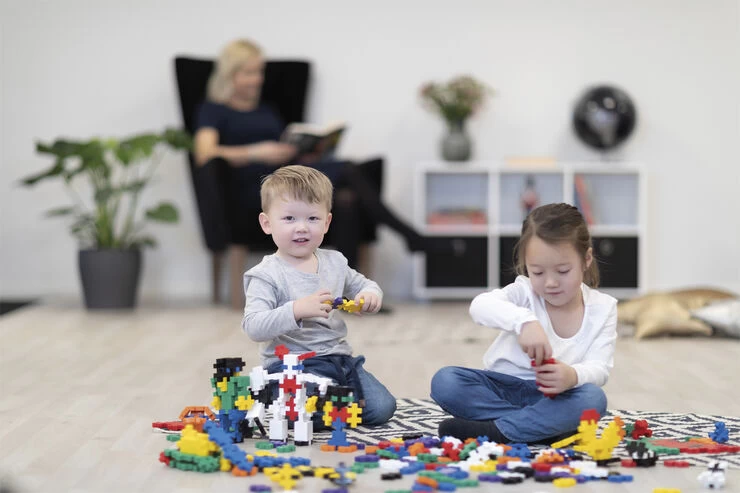 Den store størrelse er perfekt til mindre hænder eller større ideer. Dette 15-delede rørsæt indeholder grundlæggende farver, inklusive rød, blå, grøn, gul, orange, lilla og mere.