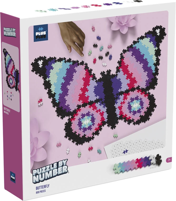 Byg en flot sommerfuglsmosaik med Puzzle by Number ved at matche farver tal Puzzle by Number kombinerer leg og læring og gør det nemt at bygge flotte mosaikker. du kan hænge op på dit værelse Eller byg noget helt andet – kun fantasien sætter grænser Kræver hverken lim eller stygning Sættet indeholder 800 stk Plus-Plus