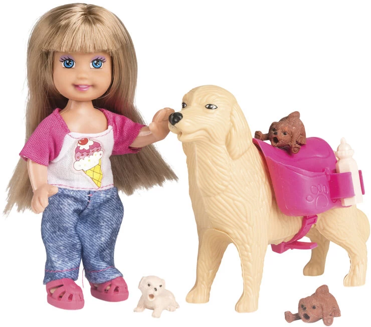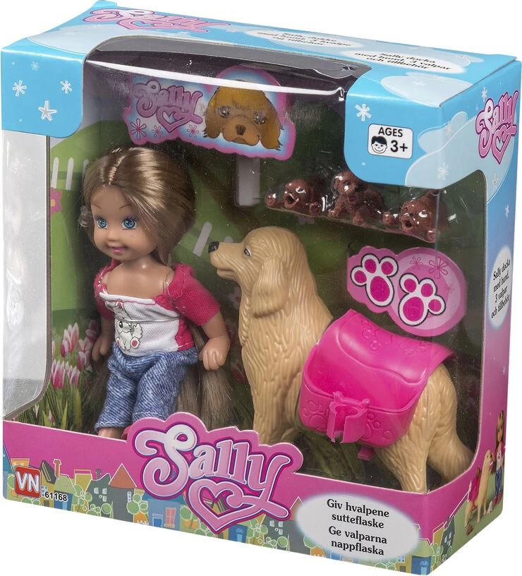 Sally med hund og 3 hvalpe Inkl saddeltaske og sutteflaske til de små hvalpe