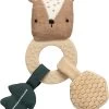 Træringen gør det let for barnet at holde ranglen i hånden. Ranglen er fyldt med blødt, genanvendt polyester. Ranglen er designet i Danmark og den hæklede del er håndlavet, hvorfor hver rangle er unik og har sin helt egen charme.