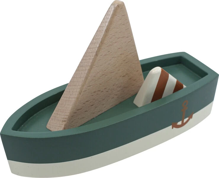 Sejlbåden er designet i Danmark og udført i et minimalistisk, men stadig let genkendeligt design af den klassiske sejlbåd. Båden har sejl og et påmalet anker på siden. Legetøjsbåden er malet med giftfri maling og udført i en kvalitet, som kan gå i arv. De let skjulte træhjul under båden gør at den kan sejle over gulvet. Sejlbåden kan være med til at udvikle og stimulere barnets motorik og fantasi. Leg at gulvet er et stort hav, en vild flod, en snoet å eller en hyggelig sø, hvor sejlbåden kan udforske omgivelserne. Båden kan også bruges sammen med Sebra Interiør’s træbiler og -færge samt filt vejbane og dukkehuset, som vil være med til at skabe et helt landskab med uendelige muligheder for kreativ og sjov leg.