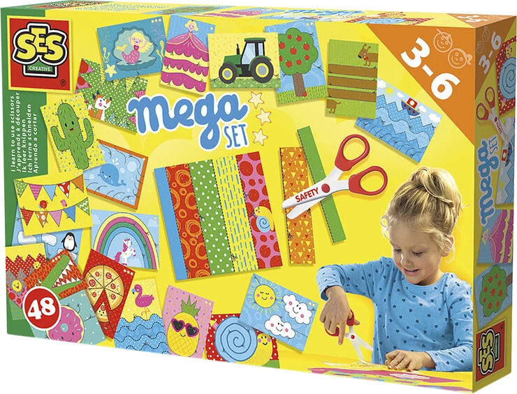Jeg lærer at bruge saks megasæt. Med disse specielle sakse er det ikke et problem! Saksene kan kun skære i papir. Så tøj og hår er ikke i fare. Med de 48 sjove fortrykte skæreark har du nok træningsmaterialer til at lære at klippe, trin for trin. Indhold:48 skæreark og enSikkerhedssaks. Emballage: 20 x 30 x 4 cm. Produceret i Holland. Alder: 3+