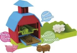 Dette bondehus er magisk. Vælg et dyr, sæt det i bondehuset, og læg noget legeler i.Når du trykker på bondehusets tag, hører du dyret brøle, og det er færdigt. Sæt det ud på marken, hvor det kan lege med sine venner. Elektrisk lerpresse i bondehus med tilbehør.Ler i farverne hvid, brun og lyserød. NB: Bruger 2 x AAA batteri Produceret i Holland. Emballage: 25 x 25 x 7 cm. Alder: 3+