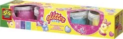 Ekstremt bløde modellervoksi 4 skinnende farver med glimmer: gul, pink, lilla og mørk pink. Kan genbruges igen og igen, hvis modellervoksopbevares i en lufttæt krukke. Det tørrer ikke ud, mens barnetleger med det.Leret er meget salt, så børnene spiser det ikke. Super vaskbar. Glutenfri. Produceret i Holland. Alder: 2+