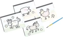 Mal kortet med en våd penselog se farverne kommefrem. Penslen er sikker at bruge, fordi hårene ikke kan falde af. Kan genbruges efter tørring. Indhold:4 magiske kort til vandfarver og1 pensel. Emballage: 30 x 20 x 4 cm. Produceret i Holland. Alder: 1+