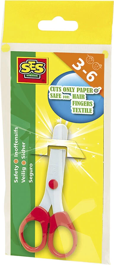 Sikkerhedsaks i en god kvalitet. Kan kun bruges til at klippe i papir, den kan ikke klippe i stof. Saksen er lavet i plastik og er uden metal. Produceret i Holland. Alder: 3+
