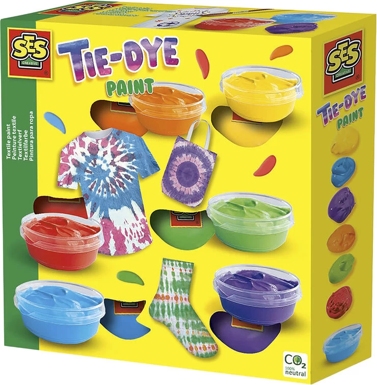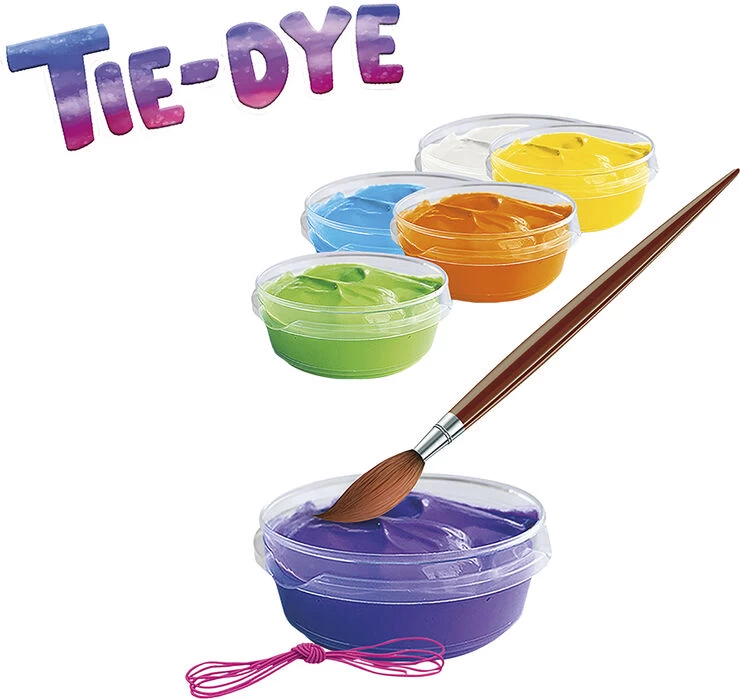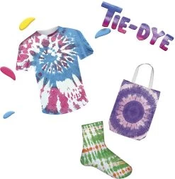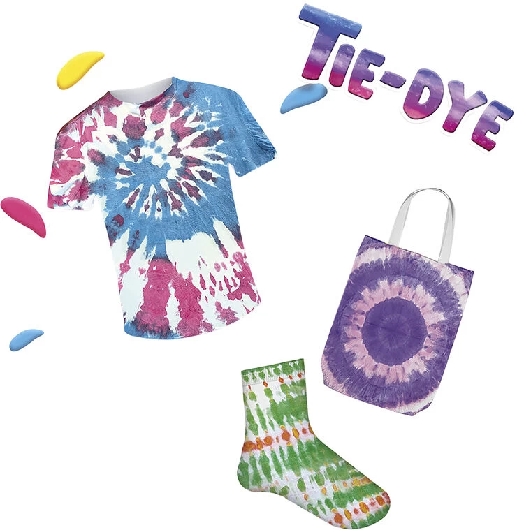 Lav dine helt egne batikdesigns.Med dette sæt kan du dekorere forskellige ting, f.eks. et par sokker, bukser, T-shirts, tasker eller pudebetræk. Rul, krøl, eller fold tøjet eller tingene sammen, sæt nogle elastikker på, og så du er klar til at male. Hvis du ruller tingene sammen på forskellige måder, får du forskellige mønstre. Hvilken teknik vil du bruge? Følg anvisningerne, og skab smukke design. Der medfølger også eksempler på batikdesign. Indeholder seks forskellige tekstilfarver