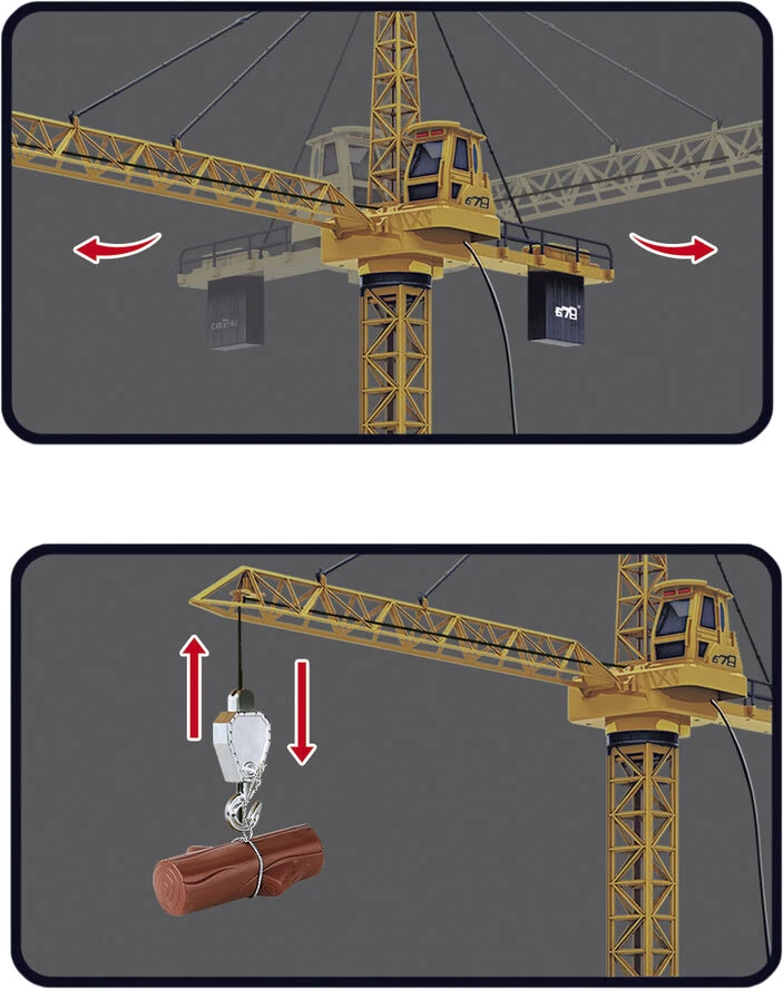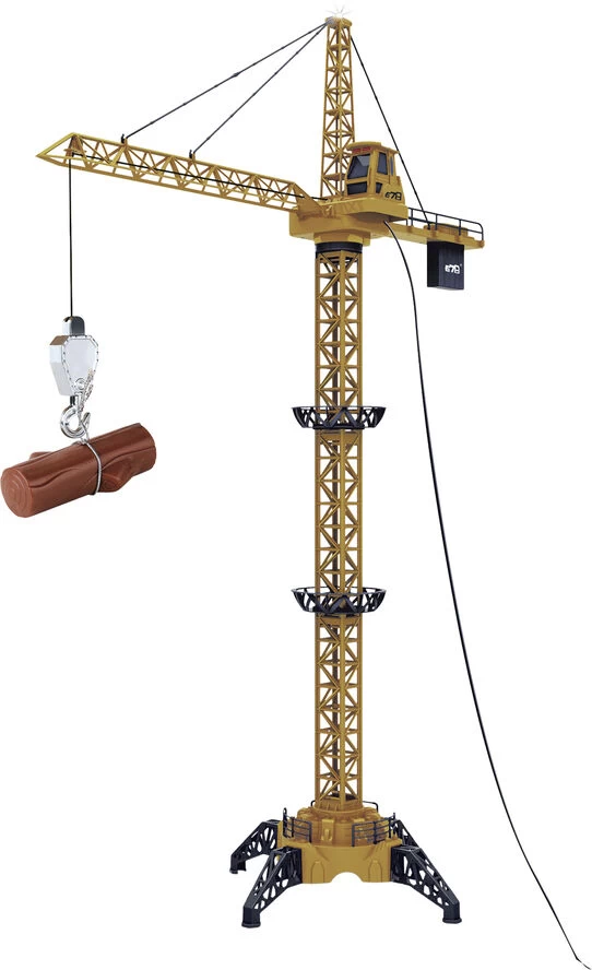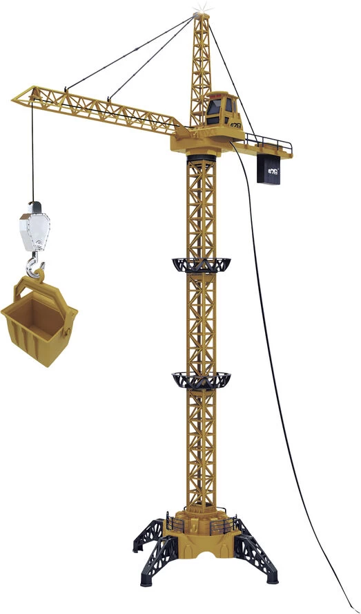 Mega kran 1.28 meter høj kabelstyret kran Kan dreje både til højre og venstre og hæve/sænke krogen Med lys i toppen når krogen hæves og sænkes Bruger 4 stk AA-batterier
