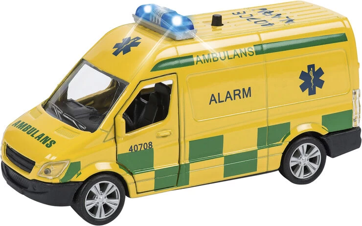 Redningssæt med 3 køretøjer Politibil. ambulance og brandbil i metal med lys og lyd Inkl batterier