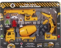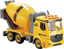 3-i-1 Construction lastbilsæt med lys, lyd og take-apartfunktion Skift mellem cementlastbil, lastbil med kran og lastbil med grab Inkl tilbehør. værktøjssæt med skruetrækker der kan bruges til at adskille og samle køretøjet, bevægelige dele og friktion Inkl 3 stk knapcellebatterier