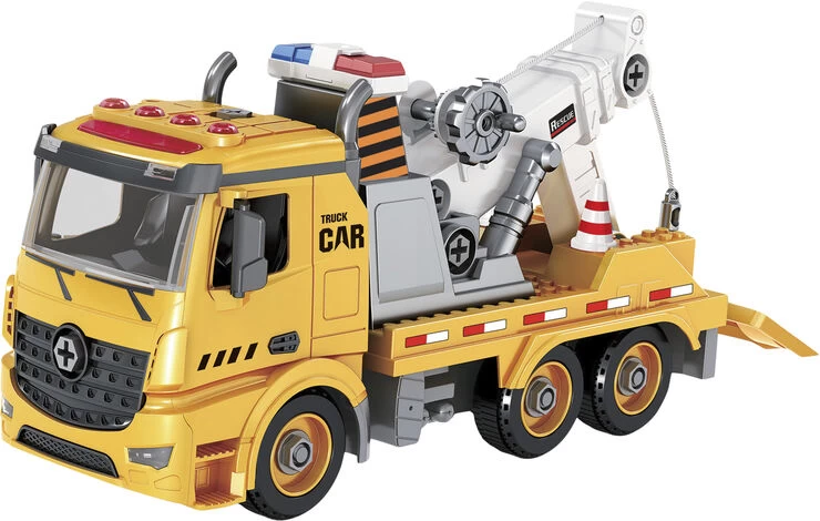 Lastbil med kran. lys, lyd og take-apartfunktion Inkl værktøjssæt med skruetrækker der kan bruges til at adskille og samle køretøjet. kranfunktion og friktion 27 cm Inkl 3 stk knapcellebatterier