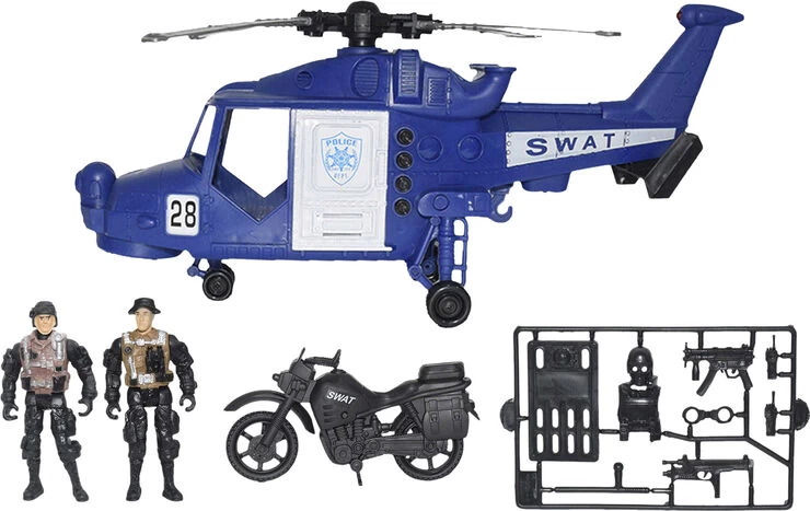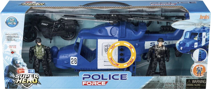 Stor politihelikopter Med lys/lyde. motorcykel, 2 fuldt bevægelige figurer og tilbehør Inkl 2 stk knapcellebatterier