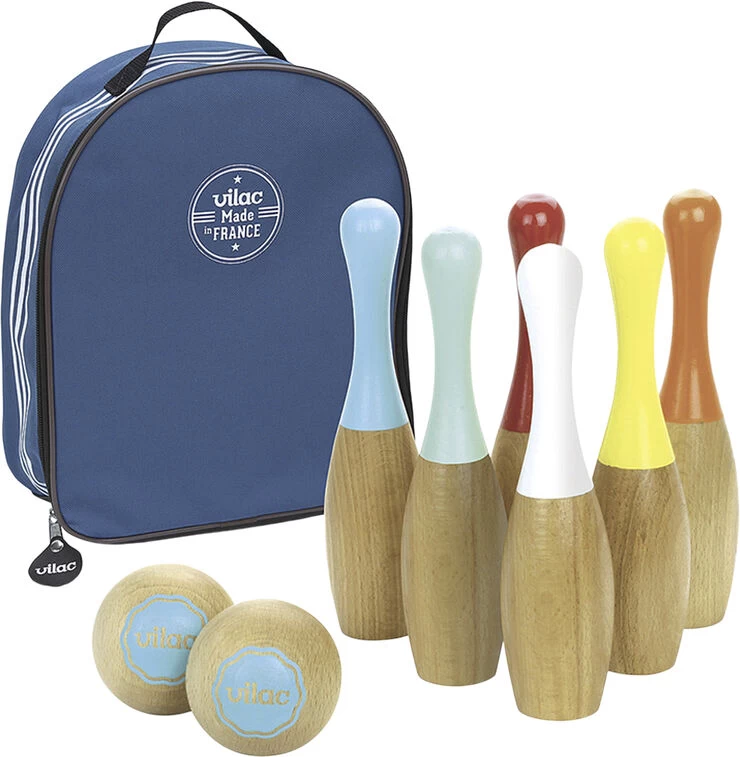 Lakeret trækeglespil leveret i en flot rygsæk. Produceret i Frankrig Produkt: 24 x 20 x 5,2 cm Emballage: 25 x 22,5 x 8 cm Alder: 5-10 år