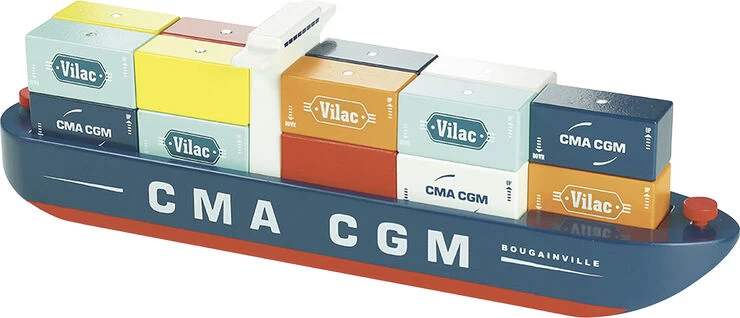 Vilac City containerskib i træ. Læs dit containerskib med de forskellige små træ-containere, og gør klar til at sejle afsted mod nye destinationer. Klodserne er magnetiske og passer til resten af VilaCity kollektionen. Produkt: 13 x 45 x 8 cm Emballage: 15 x47 x 12 cm. Alder: 3+