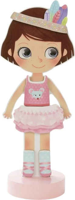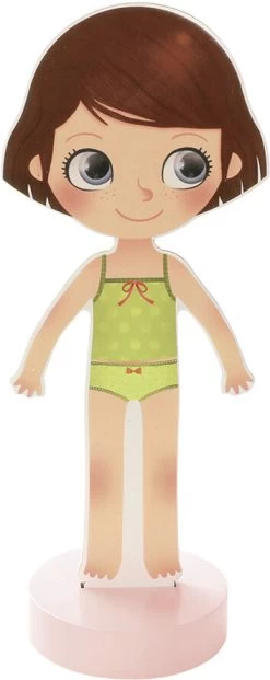 Den klassiske påklædningsdukke i et moderne udtryk. Lavet i træ med fod, så hun selv kan stå op, og magnetisk, så tøjet bliver siddende. Hun har flere smukke outfits både til sommer og til vinter, til skole og fritid. Sættet indeholder ialt 42 magnetiske dele: nederdele, kjoler, hatte og bukser. Chloe kan endda skifte frisurer. Emballage: 25,5 x 25,5 x 5 cm Alder: 3+