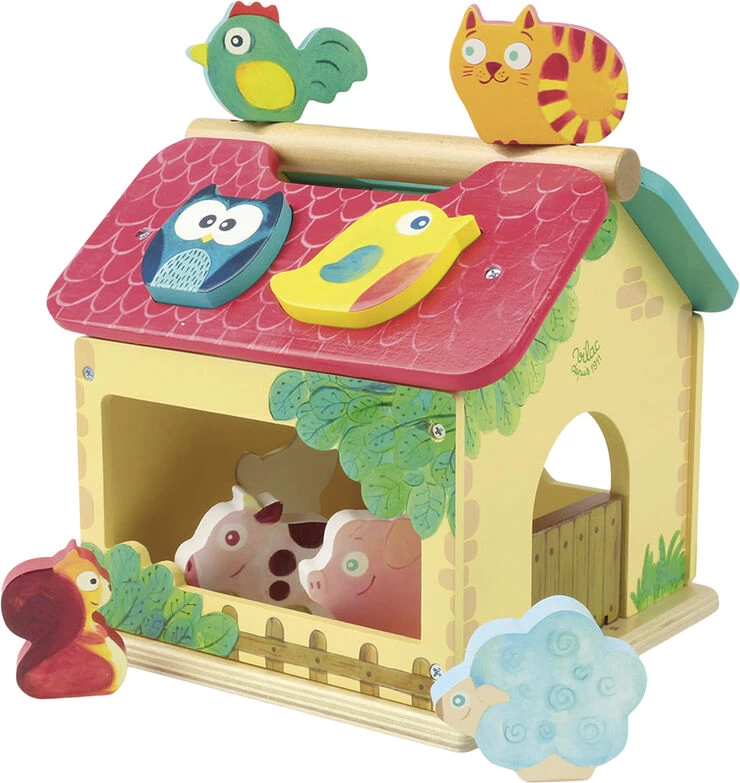 Skøn bondegårdsputtekasse i moderne farver med virkelig fine illustrationer af dyr, som skaber glæde og udfordrer det lille barn. Barnet bliver stimuleret, får styrket sin øje/hånd-koordination, udvikler sin finmotorik og logiske sans. Mor og far vil opleve glæden ved trælegetøj i god kvalitet. Produkt: 21 x 20 x 19,5 cm Emballage: 20 x 22 x 22 cm Alder: 18-36 mdr