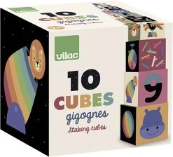 10 kraftige stableklodser i pap, som er illustreret med poetiske regnbuefarver og sjove overraskelser på hver side af Andy Westface. Med stableklodser kan børn kan sortere efter størrelse og farve, bygge, observer og tælle. På hver stableklods vises et dyr, som udfører et cirkusnummer. På de andre sider er angivet et tal og et tilhørende antal genstande, der er knyttet til cirkusnummeret. Stableklodserne danner et tårn på cirka 87 cm. 10 solide og lyse stableblokke med illustrationer på 5 sider. Tilskynder hånd-øje koordination og motorik. Sorteres efter størrelse fra mindst til størst ved at lægge stableklodserne ved siden af hinanden eller ved at stable dem eller lægge dem ind i hinanden. Observer genstande for at øge ordforrådet under leg. Tælling fra 1 til 10. Indhold: 10 x stableklodser. Materiale: Kraftigt karton Produkt: 87 x 14 x 14 cm Emballage: 15 x 15 x 15 cm Alder: 24-36 mdr